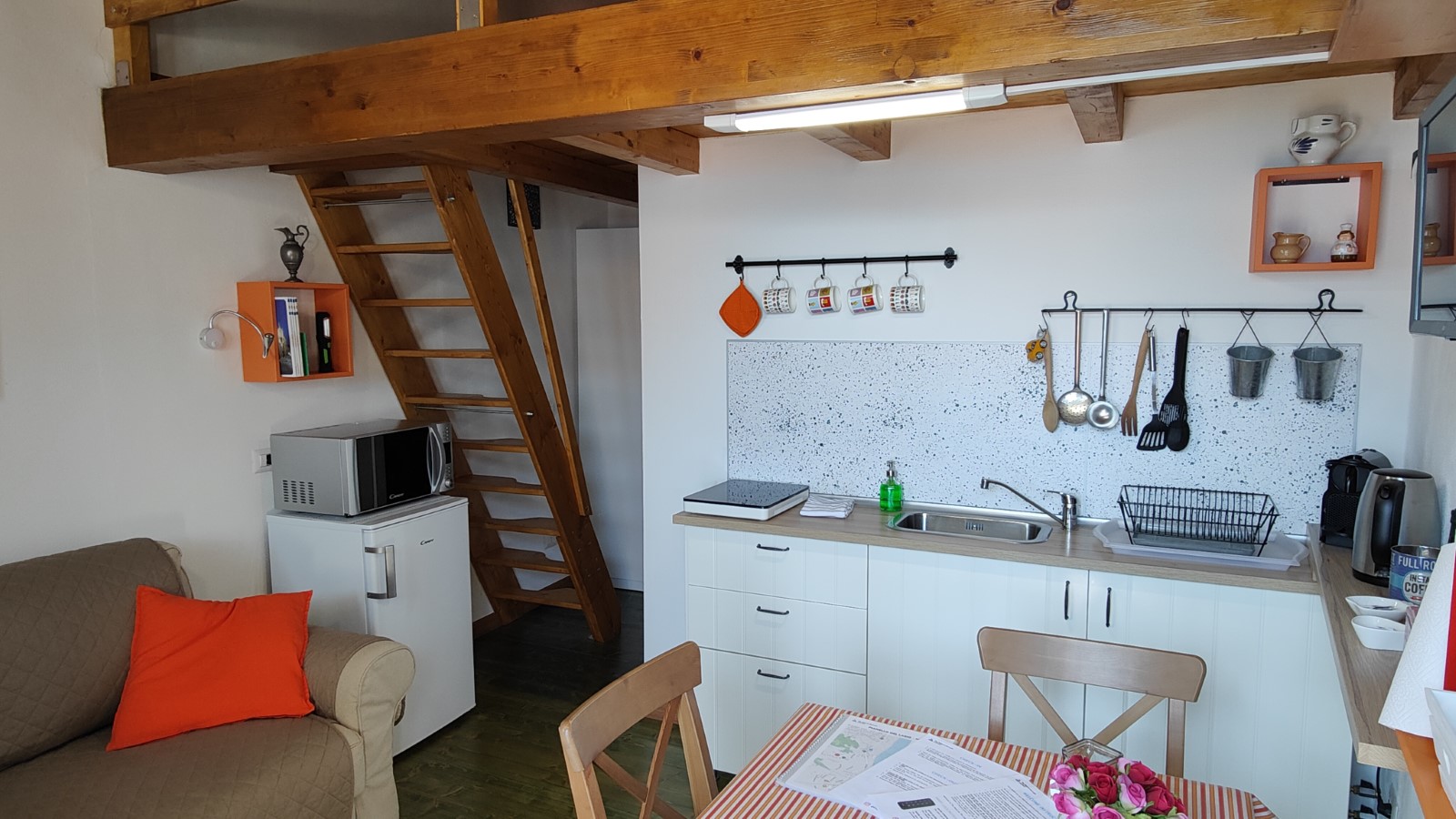 The small loft, perfect for a couple, is situated on the second floor of the building.